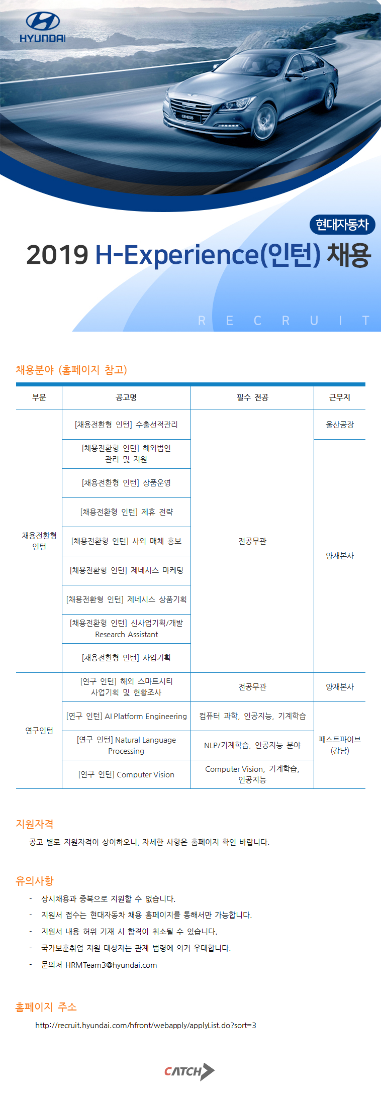 캐치 현대자동차 2019 H Experience 채용 9 22 네이버 포스트